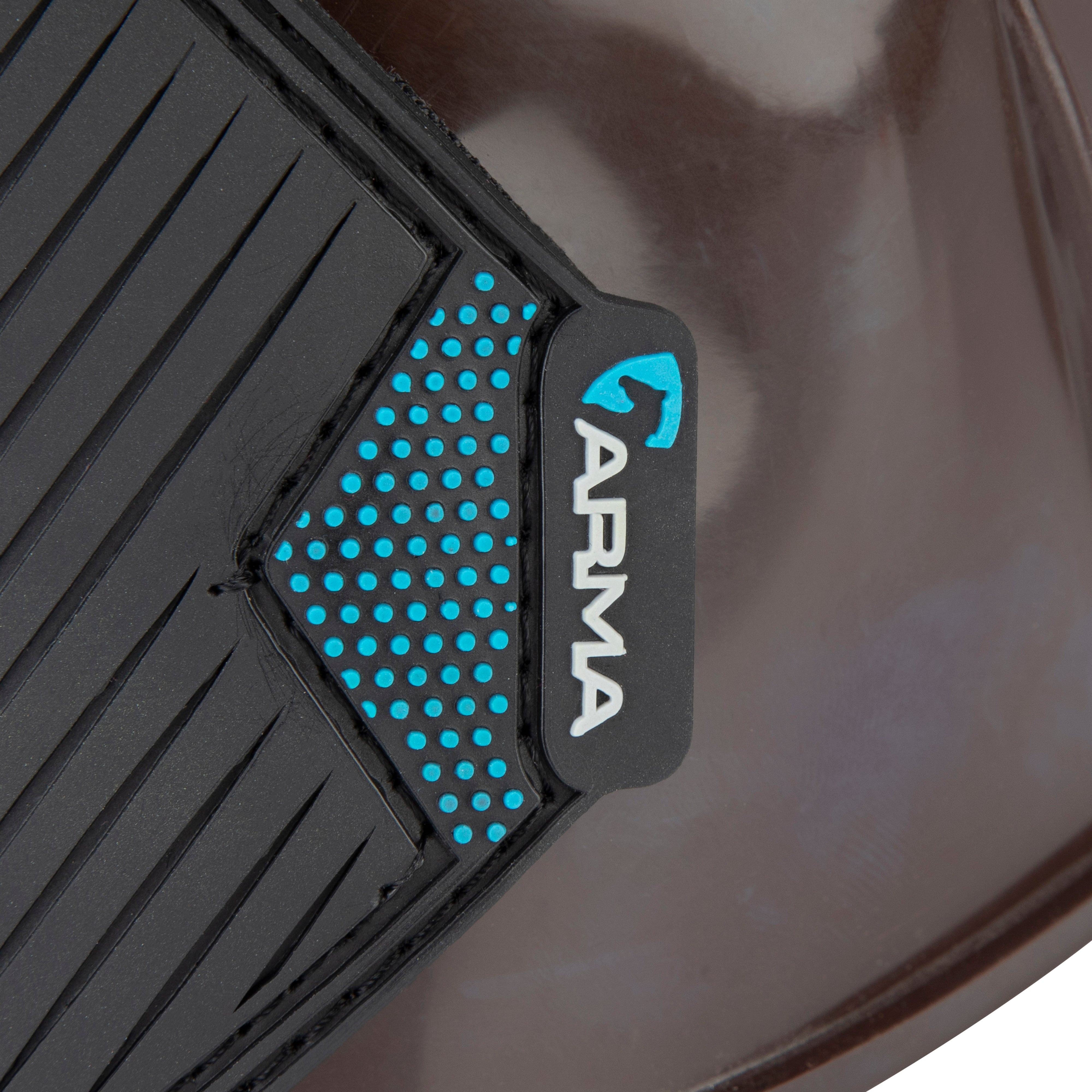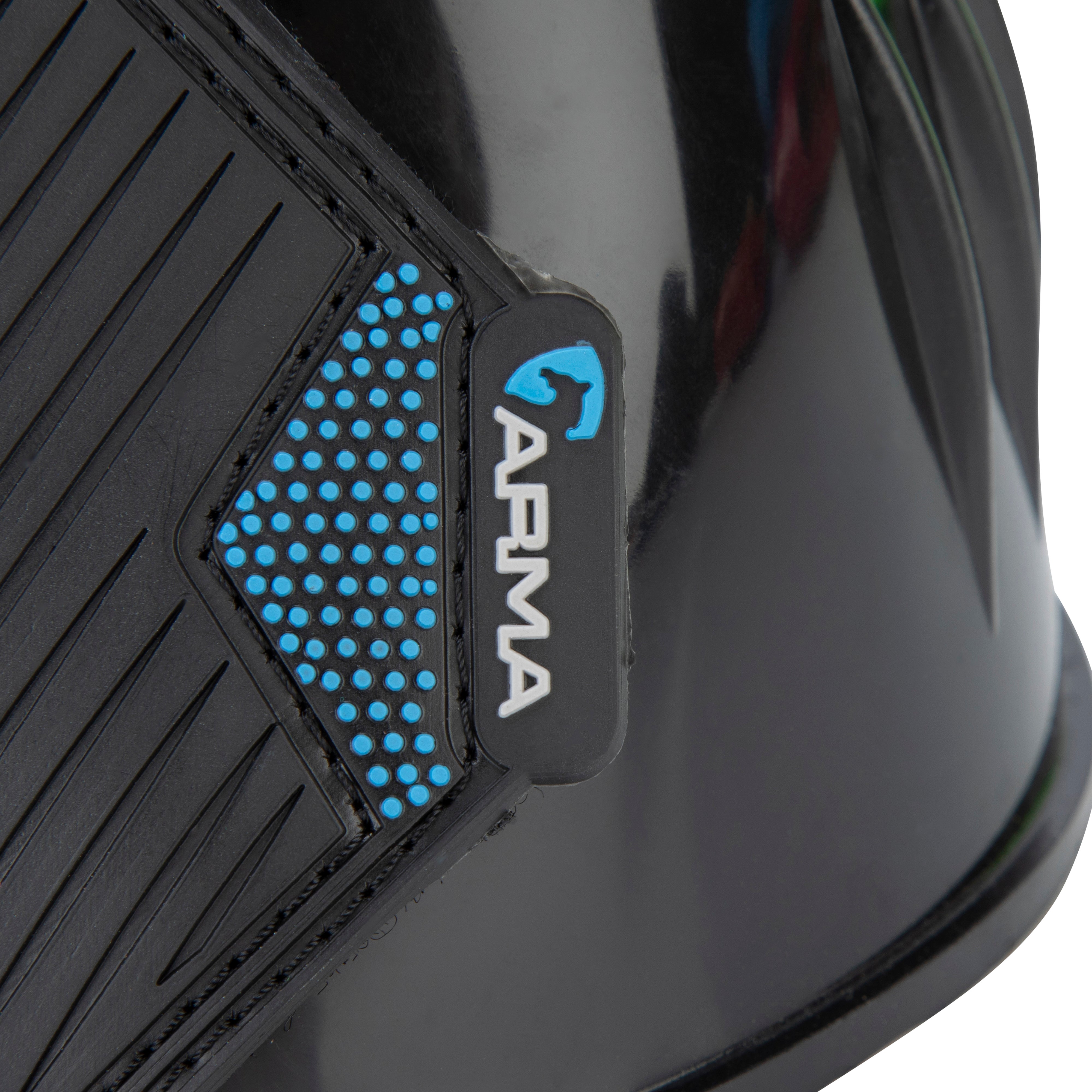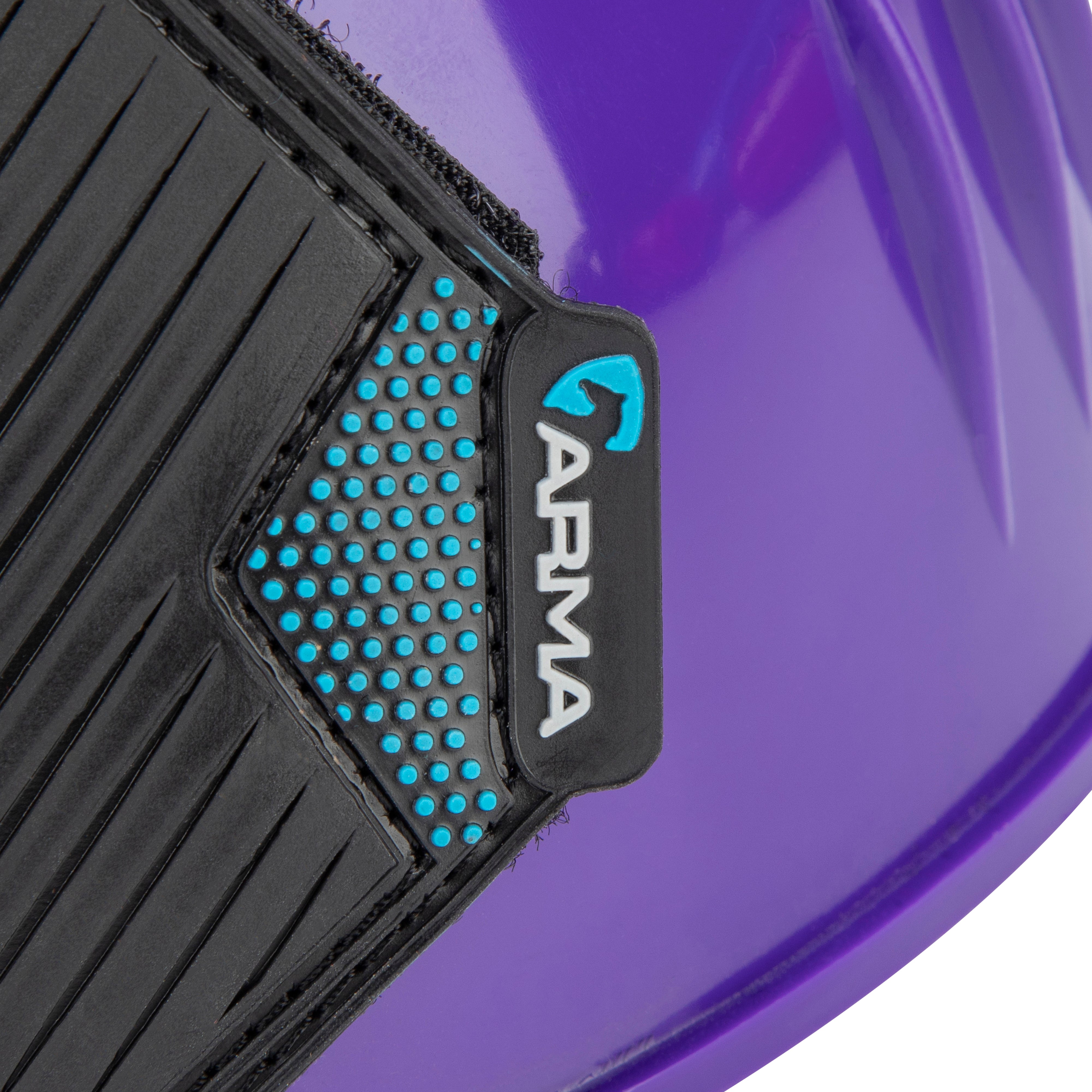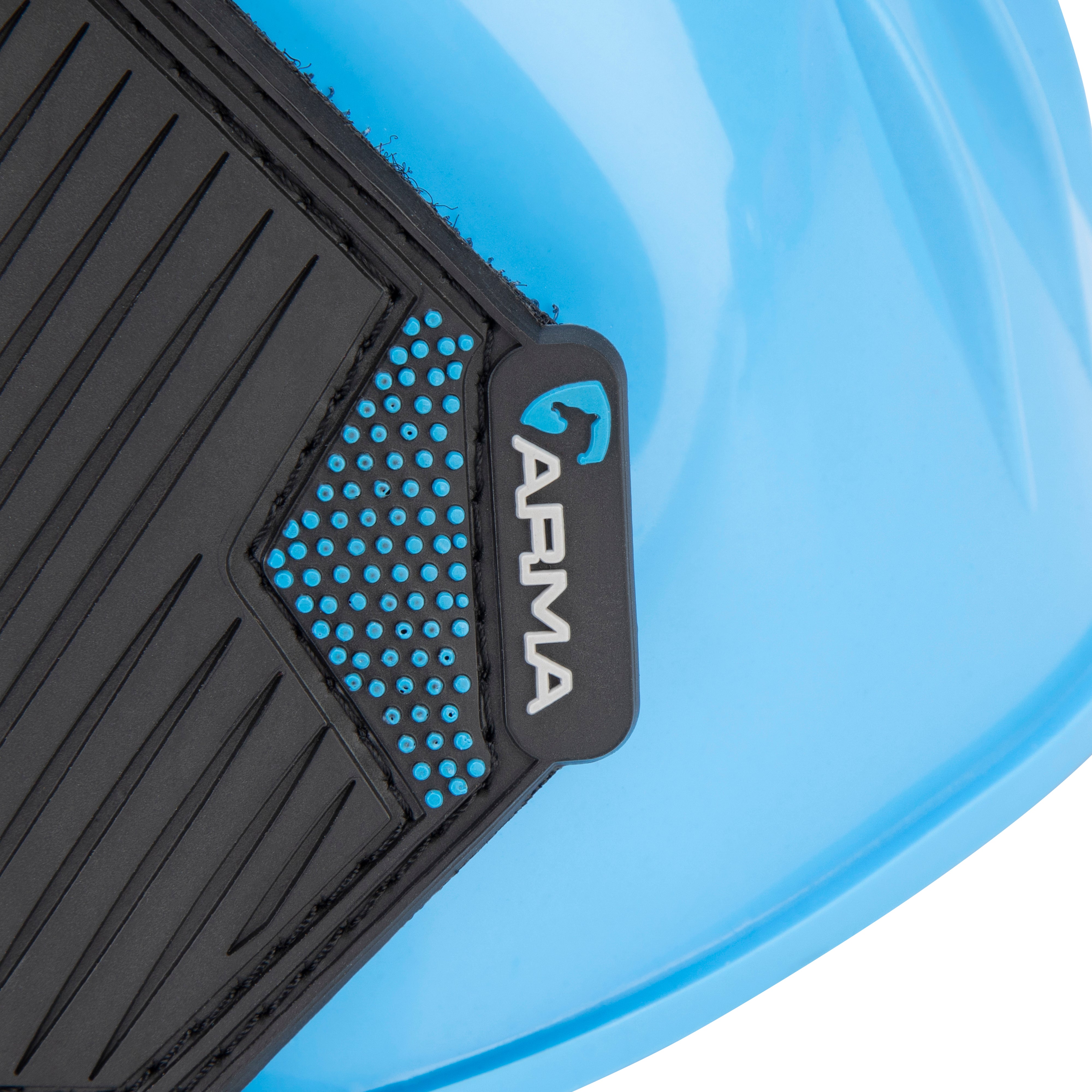 Ideal for schooling, exercise and turnout. Durable over reach boots in bright glossy colours. The flexible material deflects blows to protect the heel bulb. Easy grip double sided touch close straps secure the boot with reassurance. Attractive wide rubber straps are finished with the ARMA logo.