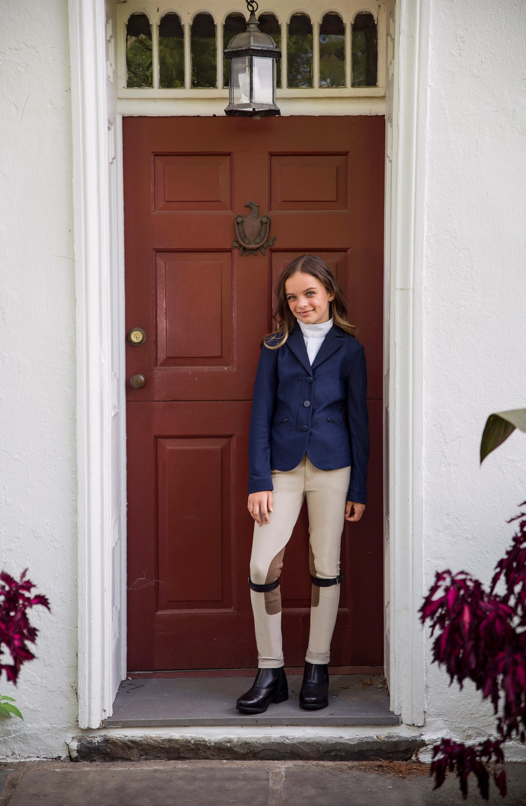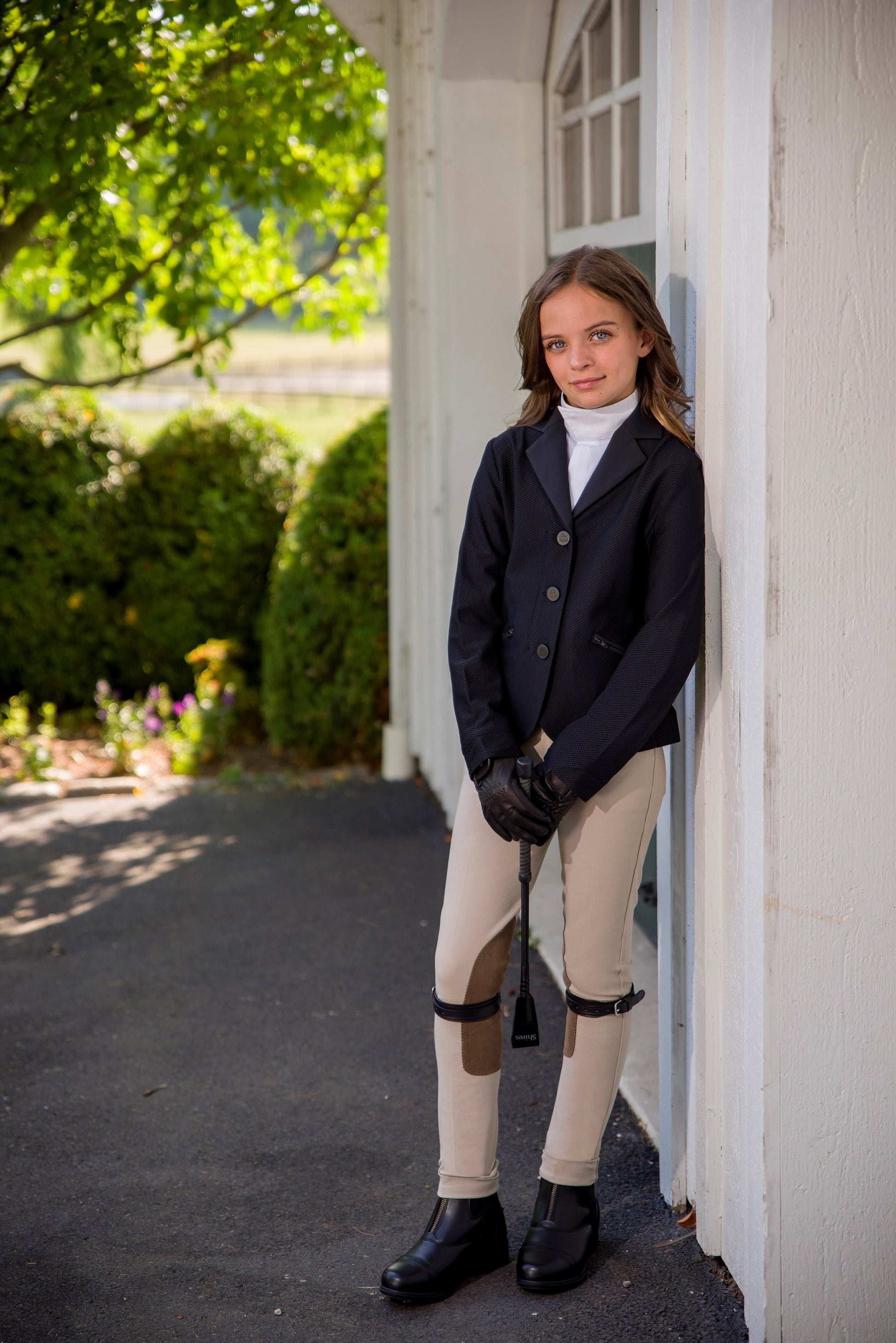 A classic show jod. Featuring a Euro-Seat, contrasting clarino knee patches, 2 inch wide waistband with belt looks, and elastice stirrup bottoms.