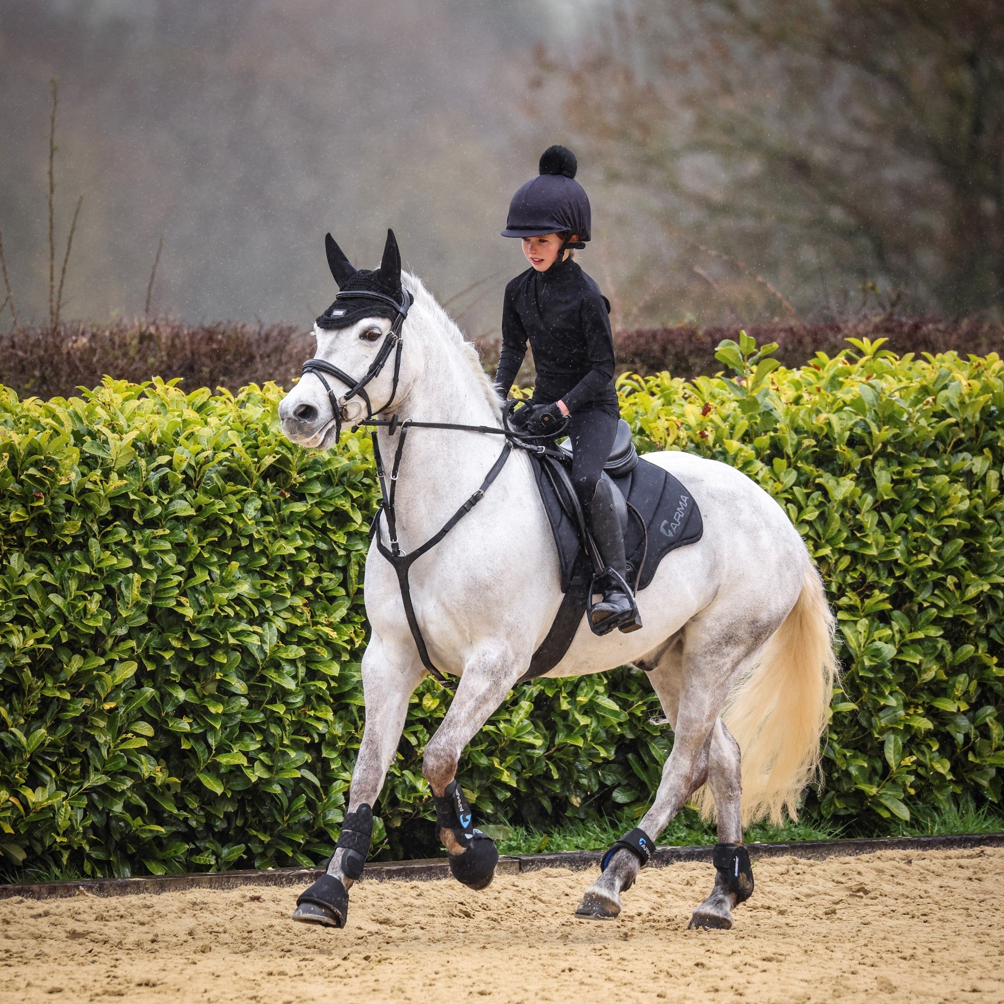 Offering year-round versatility, the Aubrion Eltar base layer offers a wicking next-to-skin layer with all round stretch. Ideal for general use and as part of a layering system. The 1/4 zip highline neck allows for optimal ventilation and versatile wear to regulate your comfort. Eltar brings essential performance to your riding along with coordinated looks for you and your horse. Key features: moisture wicking, quick drying, breathable, smooth feel, long sleeves, 1/4 zip at neck, comfort seams, self-colour Aubrion silicone prints.
