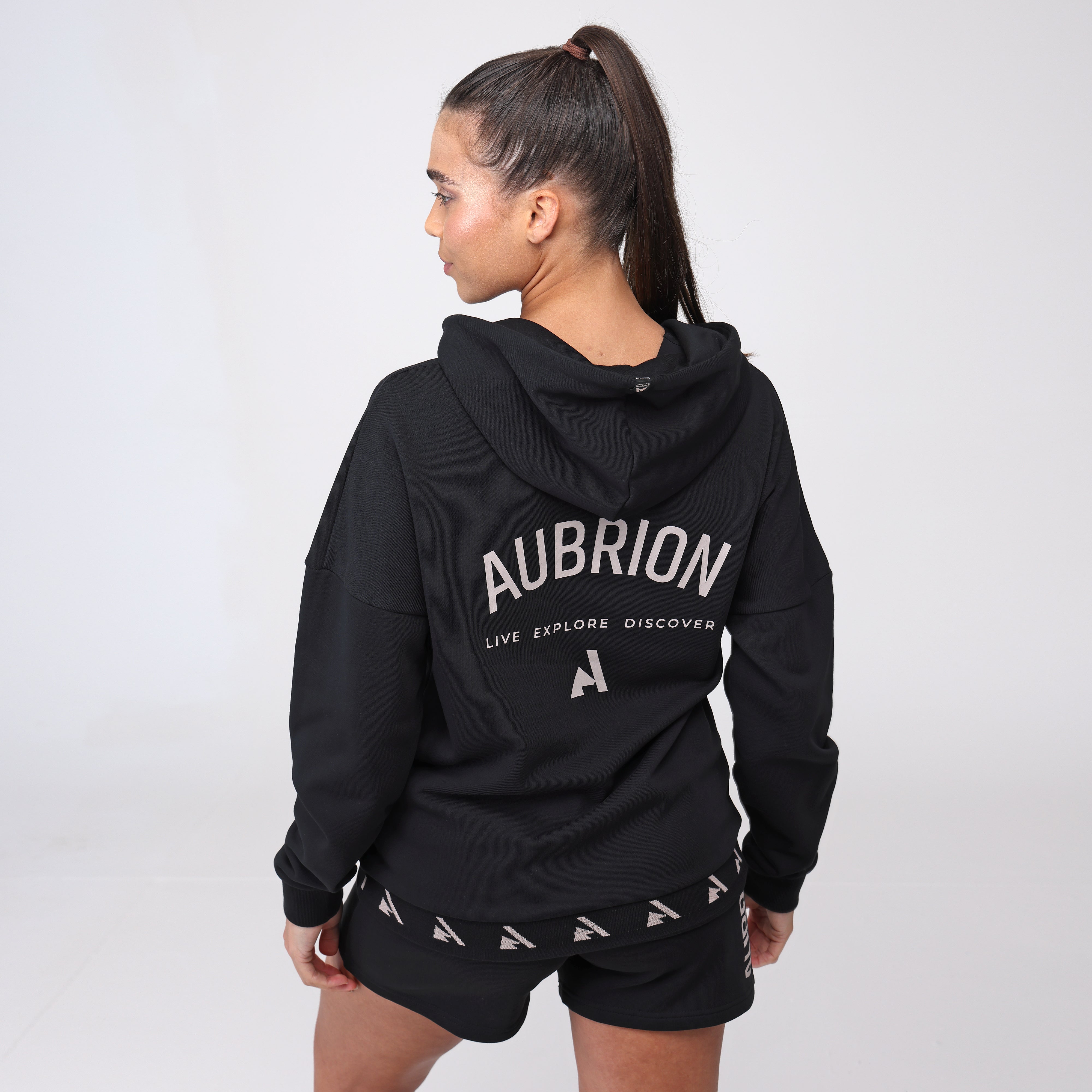 Throw on the Aubrion React Unisex Hoodie after your horse ride or pair with our sweat shorts after training. Constructed in breathable cotton French terry jersey and styled for relaxation with dropped shoulders, an oversized fit and soft ribbed cuffs and hem. The generous hood features our signature drawcord and the Aubrion woven monogram tab. Bold logos compliment the casual style. An oversized fit for ladies or true-to-size for the guys. Key features: 100% cotton French terry, dropped shoulders, relaxed fit, soft ribbed cuffs and hem, inner neck tape, Aubrion React logo prints.