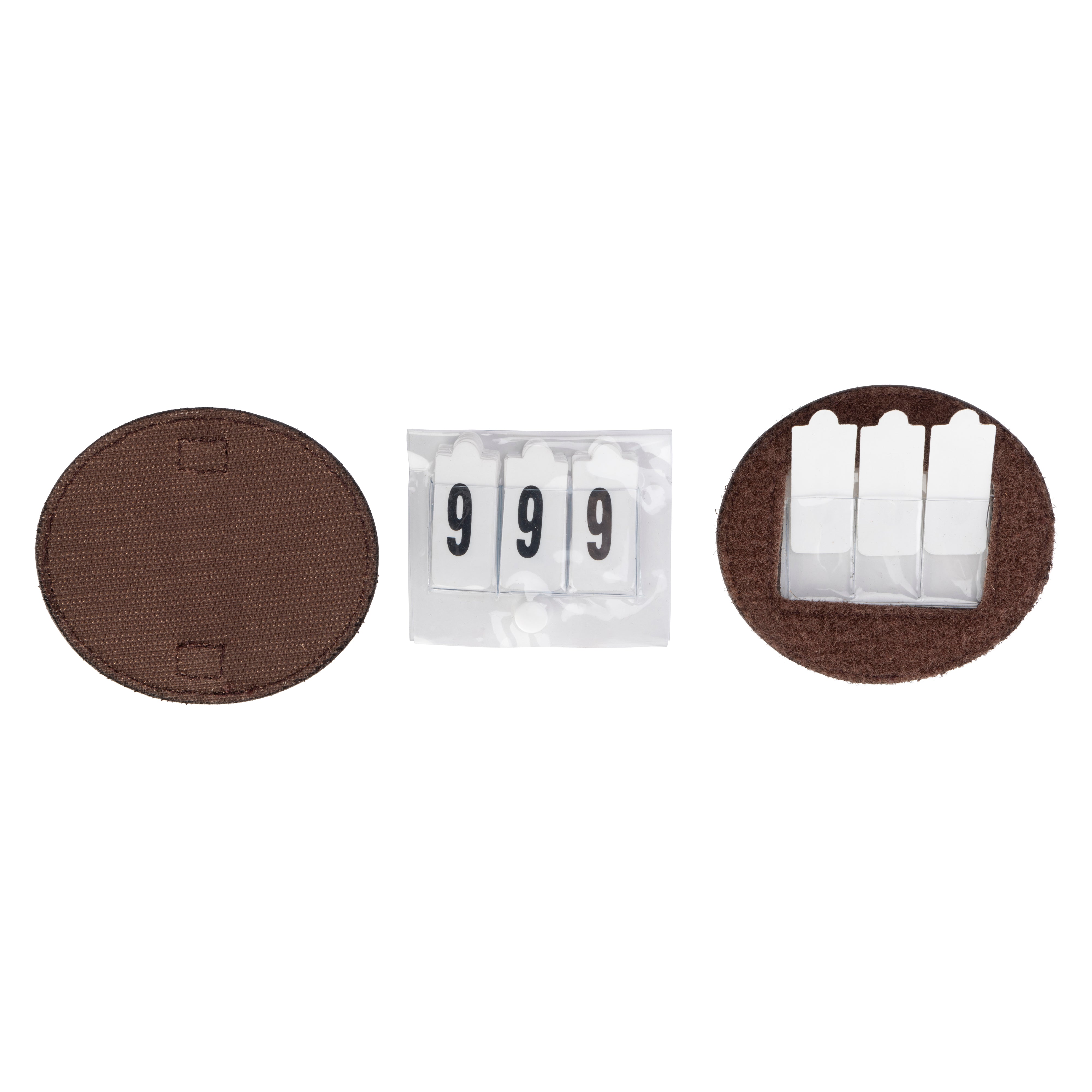 Display your competition number clearly with the show-smart Velociti bridle number holder. A pair of touch close loops secure to the bridle. The leather unit is supplied with a wipe clean 3 slot sleeve and 3 sets of numbers 0-9. Diameter: 100mm.